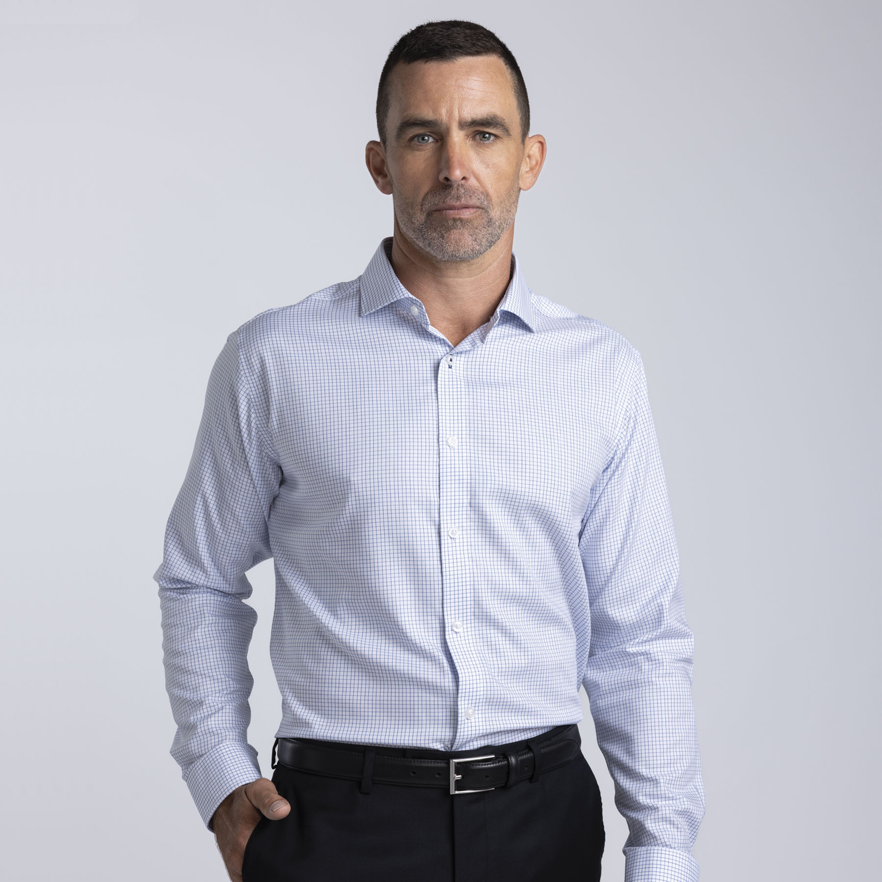 A performance-driven grid check shirt with moisture-wicking, quick-drying and wrinkle-free properties for modern workdays.