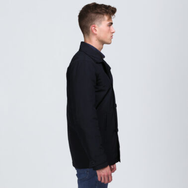 The notched lapels, tailored fit and double-breasted front imbue this coat with maximum styling potential. Crafted from a Polyester /Cotton blend with DWR water resistant coating you’ll be ready for anything life may throw at you – an-on and off duty styling essential.