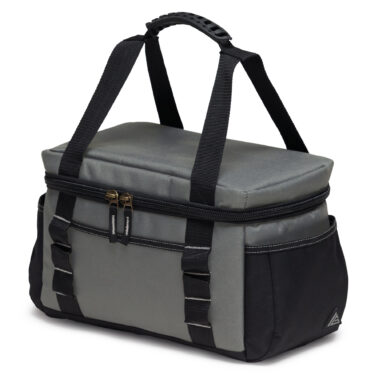 Top strap design that doubles for transporting a jacket, hard hat or a large capacity drink bottle