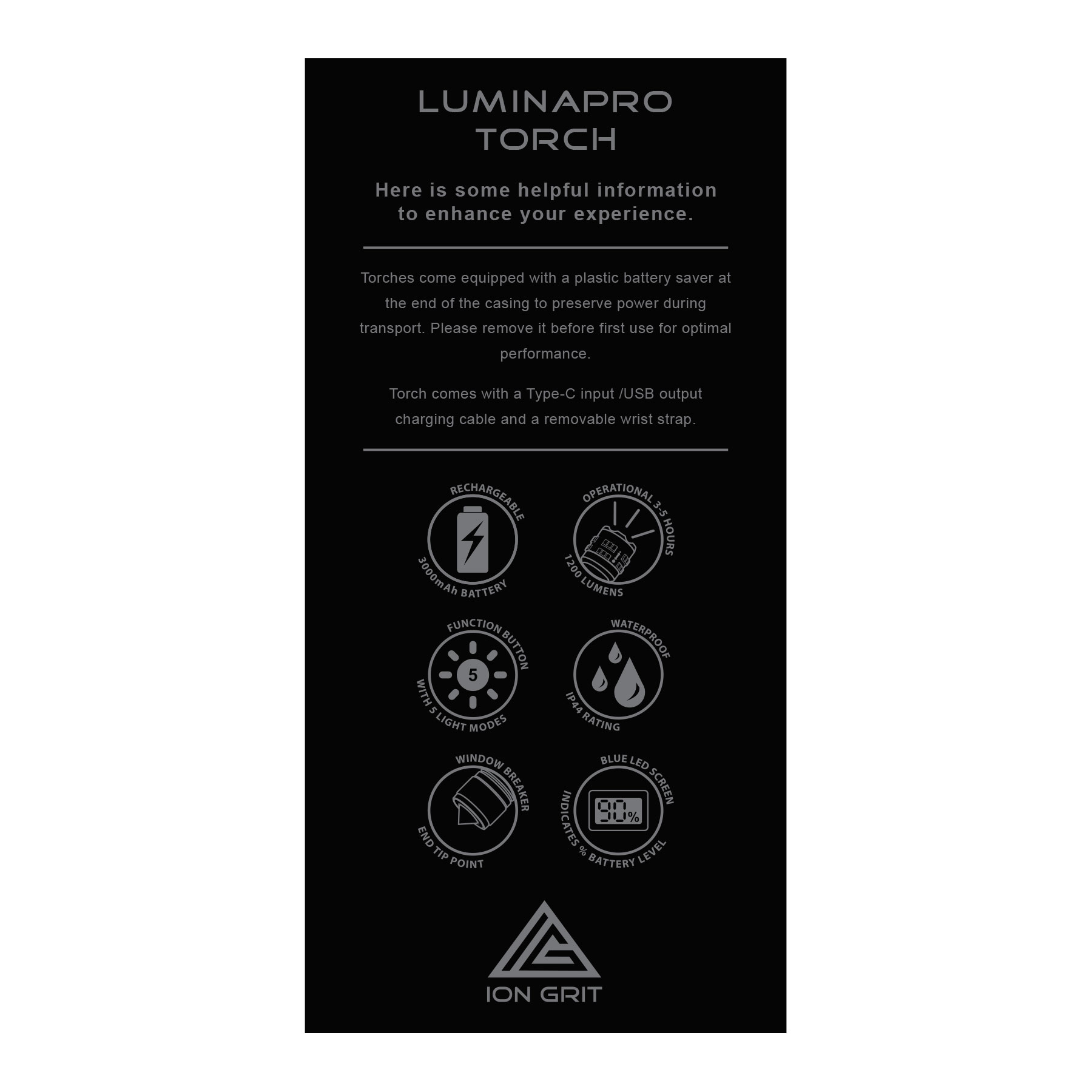 Engraved Ion Grit logo on torch
